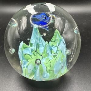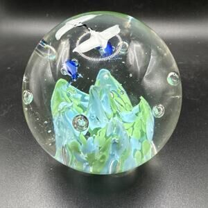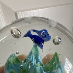 Vintage Paperweight Fish and Seagulls Murano Style Art Glass Paperweight. Has some small chips on side with a few rubs and light scratches. Please see all photos. Weights almost 3lbs