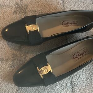 Vintage Pappagallo Amelia Black Patten Leather Pumps with Gold Detail