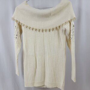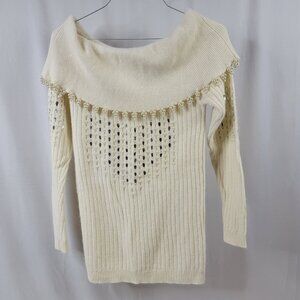 Vintage Pappagallo Beaded Pearl Off-Shoulder Sweater | Angora Wool Blend