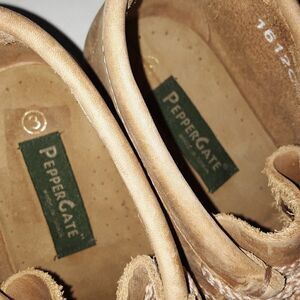 Scratches in the shoes shown in pictures, clean inside, light wear in the soles, no box. Please scroll picture for more details. Vintage Papper Gate Little Girl Chukka Boot size 3 Tan Color. Pet and smoke free home.