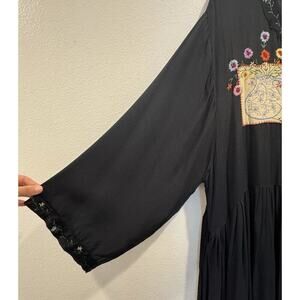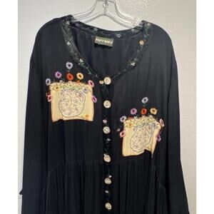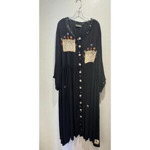 Vintage Papy Boez Women’s Embroidered Patchwork Floral Button Up Relaxed Dress
