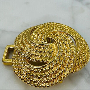 Vintage Paqette Signed Belt Buckle Set Rope Knot Design Dimensional Estate Gold