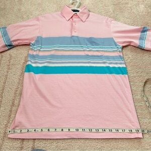 Vintage Par Four Cotton Pink Striped Men's Polo ShirtSize Small