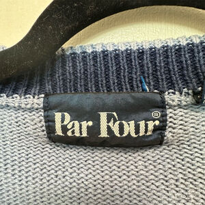 Par Four, men's cardigan, XL sweater, blue cardigan, vintage sweater, graphic print, button-up sweater, V-neck cardigan, fall fashion, casual wear, knit sweater, golfing design, long sleeve, tight-knit, hand wash