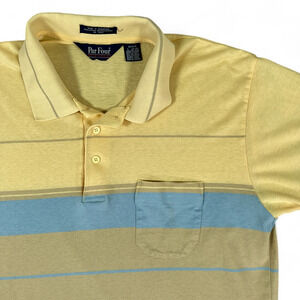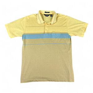 Vintage Par Four Polo Shirt Adult MEDIUM Brown Blue Orange Stripes Inlay 80s