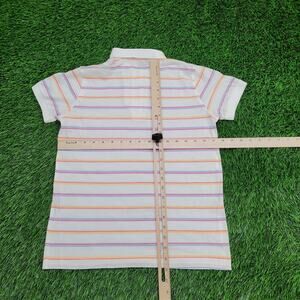 RAINBOW STRIPE POLO WOMENS, MOD FASHION CROP TOP, PASTEL COLLARED SHIRT, CASUAL STRIPED POLO, PAR FOUR SINGAPORE SHIRT, MOD SHIRT, PAR FOUR MEDIUM, SHORT SLEEVE POLO, PASTEL COLLAR TOP, CROP STYLE SHIRT