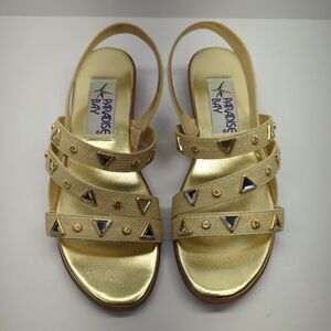 Vintage Paradise Bay Gold Embellished Strappy Sandals Women's 7