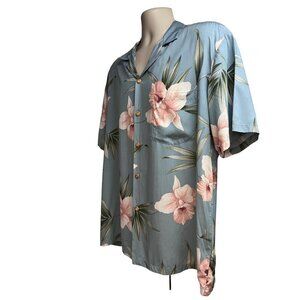 Paradise Found Mens Vintage Light Blue Floral Hawaiian Aloha Button Up Shirt Large Pocket Hawaii USA Lightweight Rayon Coconut Buttons. Great Pre-Owned Vintage Condition Gently Worn. Ships from smoke free home.