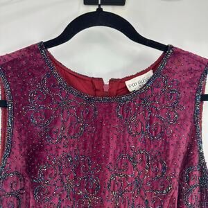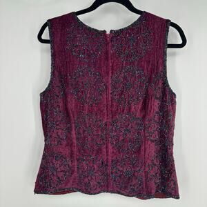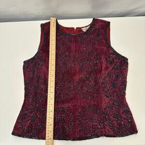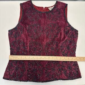 Vintage Paradise Womens L Top Large Red Velvet Sleeveless Embellished Whimsygoth