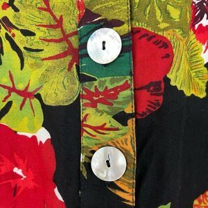 Vintage Paradiso Large Top Shell Button Front Hawaiian Crop Fit Beaded Hem Womens Rayon Long Sleeve Tropical Floral Print Beach Aloha Resort Art To Wear Beautiful Details