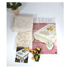 This embroidery kit is complete and in very good clean condition. Someone has started some of the daisy, please see photos provided.