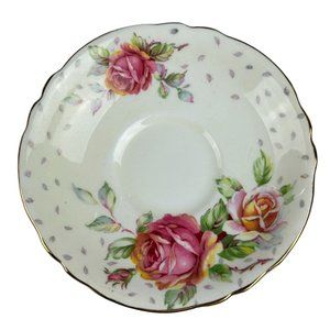 This Vintage Paragon Golden Emblem Teacup and Saucer set, crafted from fine bone china, boasts a multi-colored design that exudes elegance and sophistication. It carries the prestigious double warrant, ensuring top-notch quality.