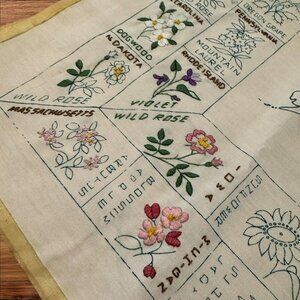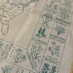 Very Rare vintage Paragon Embroidery US State Flowers Map