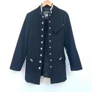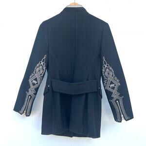 Vintage Parasuco Military Style Embroidered Wool Jacket Black Silver Baroque XS