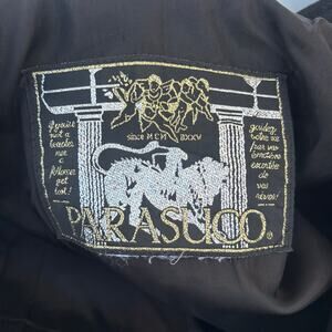 Striking Parasuco wool-blend military-style jacket with Baroque embroidery and metal hardware. A rare Y2K archival piece blending gothic glamour, moto chic, and quiet luxury craftsmanship. Perfect for layering over jeans or mini skirts for a statement Whimsygoth or Dark Academia look.