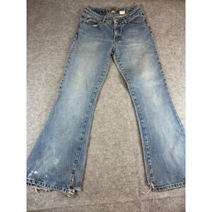 Vintage Paris Blues Experience Jeans Womens 9 Blue Denim Flared Baggy Raw Hem Distressed Y2K