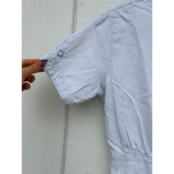 Vintage Paris Blues Light Chambray Romper with Pearly Snap Buttons Size 3