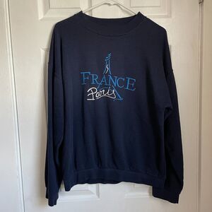 Vintage Paris France Embroidered Navy Blue Sweatshirt Eiffel Tower size S/M