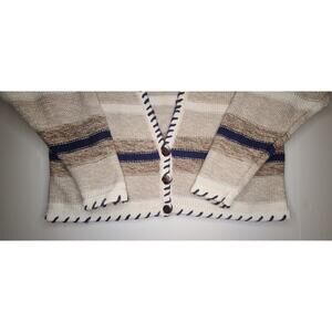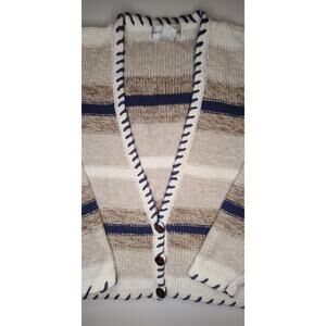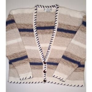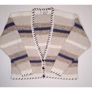 Vintage Paris Sport Club Cardigan Sweater Chunky Buttons Striped 90’s Size Large