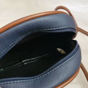 I believe this crossbody bag from Paris Sport Club is from the 90s. It is all blue with a long brown handle. Zipper closure.