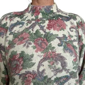 Vintage Paris Sport Club Silk/Angora Sweater Mock Neck Floral L