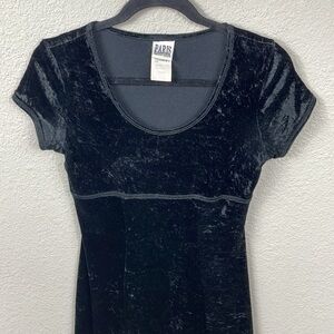 Vintage Paris Sport Club Velvet Empire Waist Midi Dress Black 90s Sz S