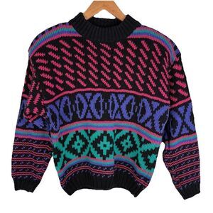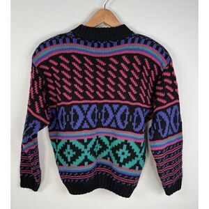 Vintage Paris Sport Club Pullover Sweater Womens Small Grandpa 80s Cosby Geometric in great condition. Has padded shoulders.