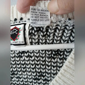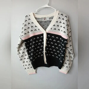 Vintage Paris Sports Club button down cardigan sweater black white pink Small