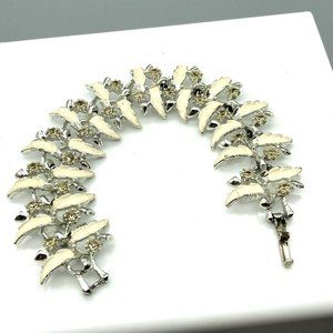 Vintage Park Lane White Enamel and Crystal Bracelet, MCM Abstract Floral