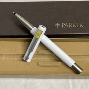 Vintage Parker Ballpoint Pen White Chrome Arrow Accent Black Ink Original Box