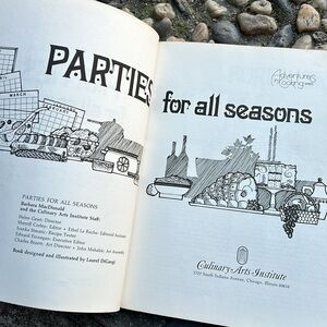 Vintage 1976 “Parties For All Seasons: Recipes, Menus, And Entertaining Ideas for a Full Year of Holidays, Special Events, and Non-Events” full of fun themed recipes and retro illustrations and photos