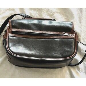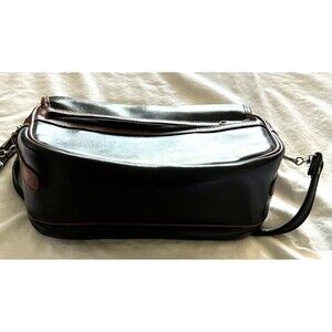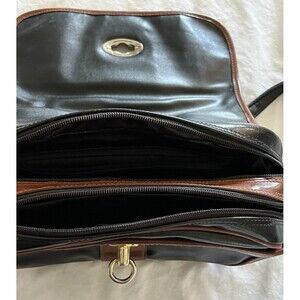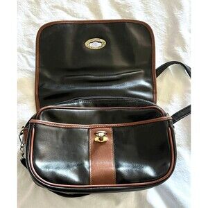 This vintage Partio handbag is a stylish addition to any collection. Made in Italy, it features a solid black exterior leather material with a black lining. The bag has a medium size, measuring 10 inches in width, 7 inches in height, and 3 inches in depth. It has a single leather handle/strap in black, and is suitable for women. The bag has a classic shoulder bag style, with a vintage touch that adds to its charm. It is perfect for any occasion, and its black exterior and handle/strap color make it a versatile accessory that can be paired with any outfit. This Partio handbag is a must-have for anyone who loves vintage fashion. Strap has a 21 inch drop and is easily detachable to allow use as a handbag.