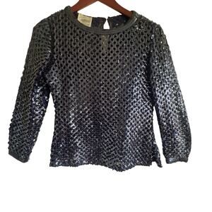 Vintage Sequin Sweater, Union Made USA, Openwork Knit Top, Lattice Knit, 90s, Y2K, Open Knit, Sequin Sweater, Glam, Party, Event, NYE