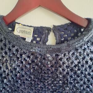 Vintage Partique New York Navy Sequin Openwork Lattice Knit Sweater Medium USA