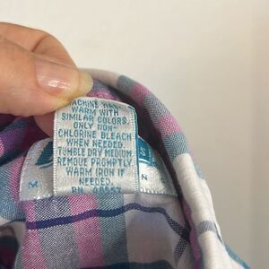Vintage Partners by Mervyns teal, pink and white plaid women's button-down top.