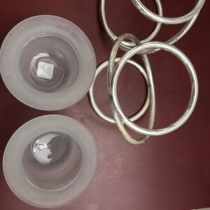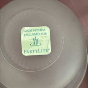 Chic frosted glass design. Ideal for stylish home accents. Intertwined PartyLite Frosted Glass, stands 4 inches. This item is a vintage item an has normal wear. There are some tarnish marks on the silver from wear.