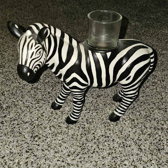 Vintage PartyLite African Zebra With Glass Candle Holder
