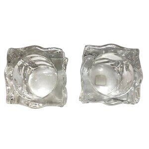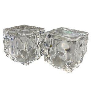 Vintage PartyLite Lead Crystal Glass Ice Cube Candle Holders Set 2
