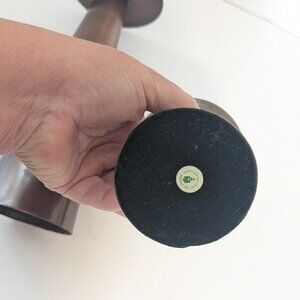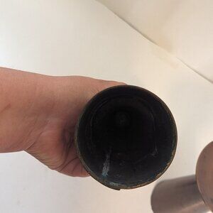 PartyLite Pillar Bronze Metal Wrapped Candle Holders. The bottom of the taller candle is missing the bottom cap, this has no bearing on its stability. Measurements: 6.25 and 8.75” tall