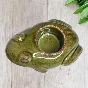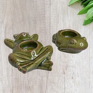 Vintage PartyLite Two Frogs Candle Holder Votive Ceramic Garden Decor Figurine