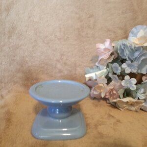 Vintage Partylite Blue Ceramic Base, Blue/Peach Floral Ring & Candle