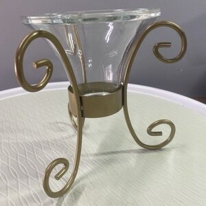 Vintage Partylite Metal Gold Candle Holder 6" Tall 6"wide