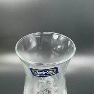 Vintage Pasabahce Etched Glass Vase Clear Floral Pattern With Sticker Turkey VTG