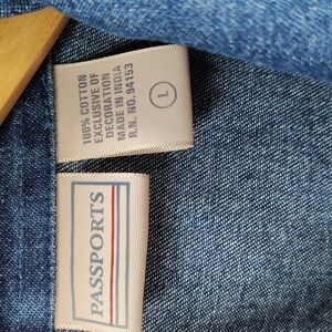 Vintage Passport Fall Leaf Themed Jean Jacket Size L Button Up Embroidery Cotton