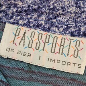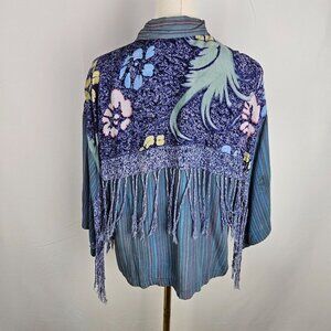 Vintage Passports Pier 1 Imports Floral Fringe Button Shirt Medium Blue Boho
