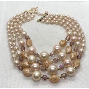 Vintage Pastel Peach Plastic Bead 4 Strand Tiered 16'' Necklace 1960s Japan