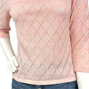 Vintage Pastel Pink Diamond Pattern Sequined Top Small Victor Costa Mob Wife