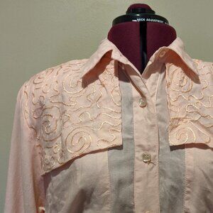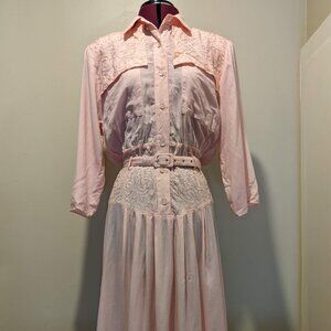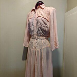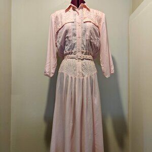 Vintage Pastel Pink Embroidered Maxi Dress | M-L
