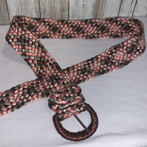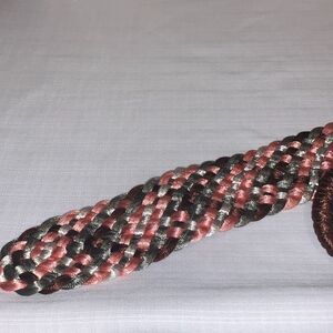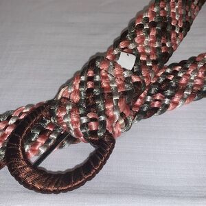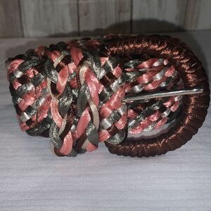 Pink brown gray white satin/nylon braided woven belt. Adjustable. Excellent like new condition.