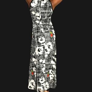 Vintage Pat Richards Slinky Dress Black White Tropical Floral Maxi 70s Small